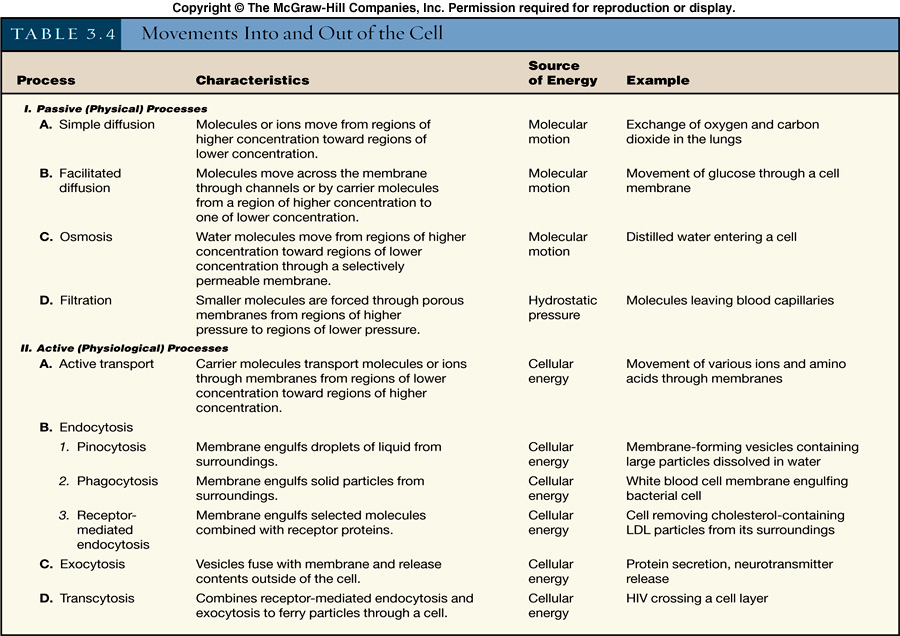 organism is alive are listed in the table above.