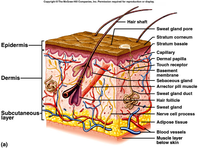 (sweat) glands. Beneath the dermis is the subcutaneous layer (hypodermis). This