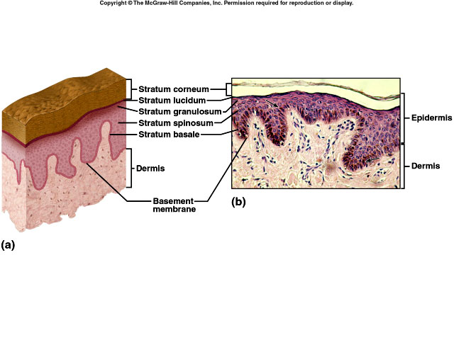 stratum basale: single layer of cuboidal to columnar cells which are stem