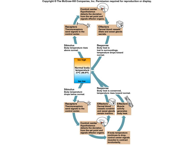 convection, and evaporation. If body temperature is high, stimuli are sent to the brain